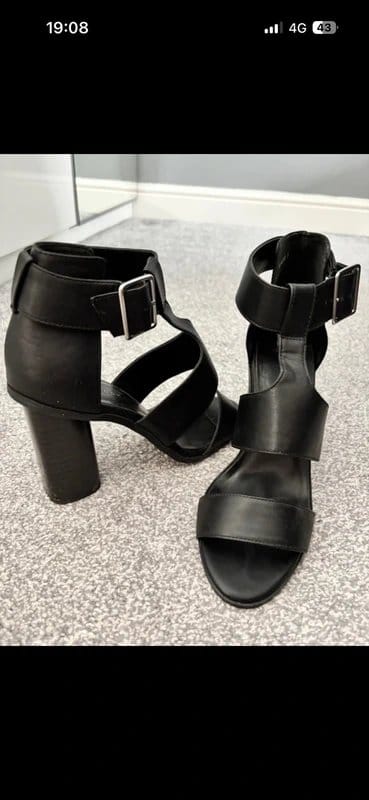 View Vinted's returns policyThe New Look Black Leather Block Heels (UK 5) is made from faux leather.