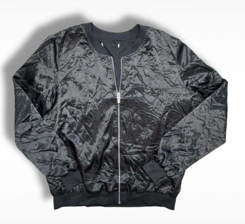 Classic black satin-style bomber jacket from New Look. Lightweight zip-up design with ribbed collar, cuffs and hem for that clean Y2K streetwear look. Easy everyday layering piece that works with any outfit. Crafted from lightweight satin fabric with a matte finish, it offers a sleek and modern look. Perfect for casual outings or adding a touch of edginess to your wardrobe.