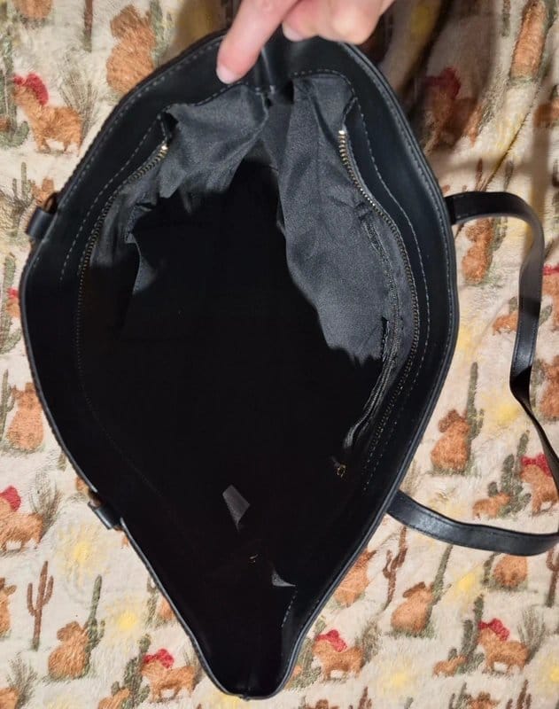 Stylish New Look black shoulder bag with a zip decoration and 2 inside side pockets. Made from soft black detailed material and faux leather, this bag is in excellent condition and never worn.