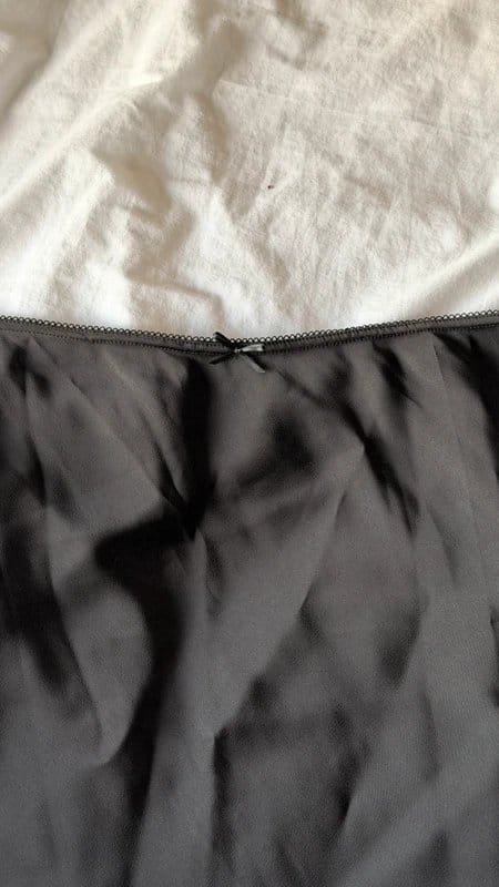 View Vinted's returns policyChic black silk mini skirt from New Look featuring a bow & lace trimmed waist and an A-line silhouette. Perfect for casual or evening wear.