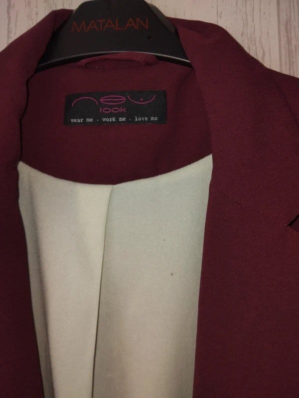The New Look Burgundy Blazer Size 10 is made from polyester, cotton.