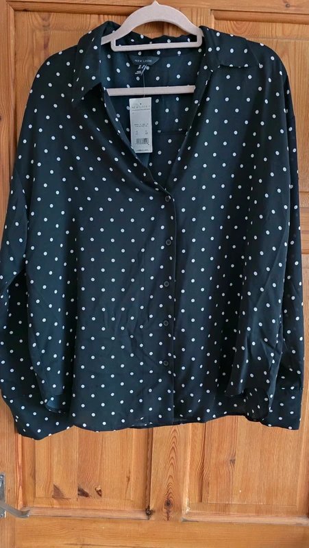 The polka dot chiffon blouse by New Look features a button-down front and a relaxed fit, perfect for a casual day out or a relaxed evening gathering.