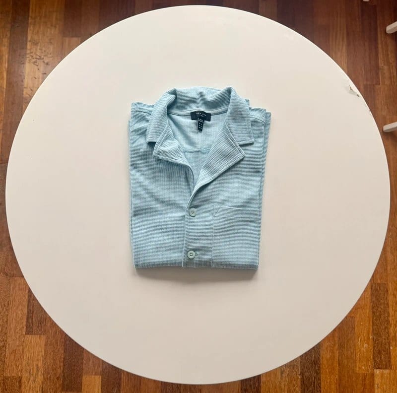This light blue button-up shirt by New Look features a textured, ribbed fabric and a classic collar with button-down front. Perfect for casual or smart-casual occasions.