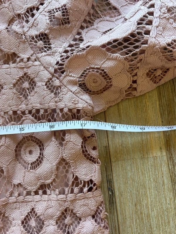 Gorgeous New Look lace crochet top in a soft blush pink tone. Features intricate floral lace detailing with a delicate sheer finish for a feminine, romantic look. Perfect lightweight piece for spring/summer styling, festivals, holidays or layering.