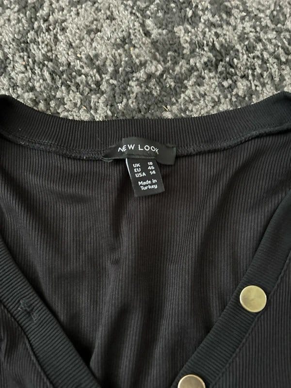 See all outfit ideasStylish black ribbed bodysuit by New Look, featuring a crew neckline and buttoned front. Made from stretchy ribbed fabric for a comfortable fit.
