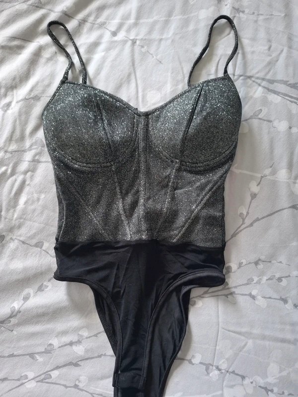 The New Look Sparkle Bodysuit in Silver is available in sizes S.