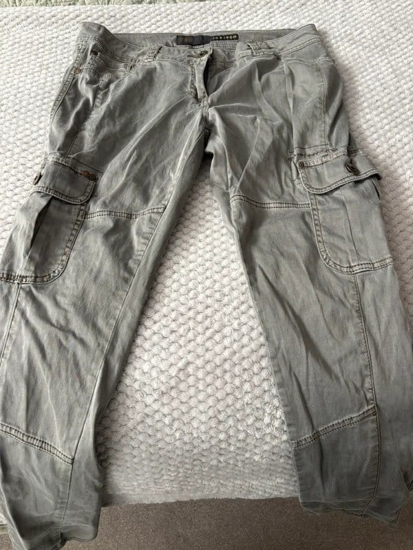 The New Look Grey Cargo Pants for Women is available in sizes M.