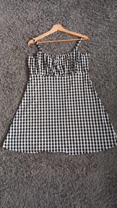 View Vinted's returns policyLightweight and versatile black and white gingham mini dress from New Look. Featuring a ruched bust and adjustable spaghetti straps. Perfect for casual outings or summer events.