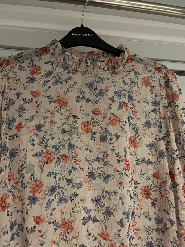 The New Look Floral Chiffon Blouse is available in sizes M.