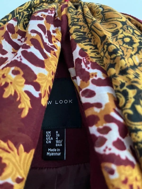 Lovely plum coloured coat from New Look. Featuring embroidered details and functional pockets, this piece adds a touch of elegance to any ensemble.