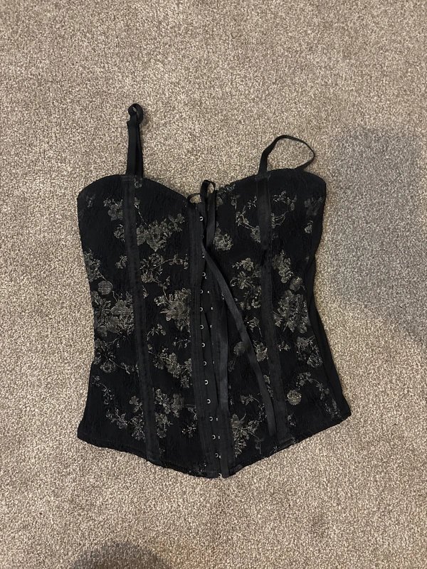 The New Look Floral Print Corset in Black is available in sizes M.