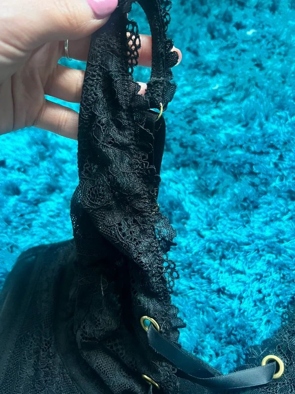 The New Look Black Lace Corset Bra is available in sizes L.