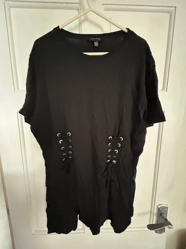 “Pair with black leather leggings and ankle boots for a cohesive, edgy look.”
