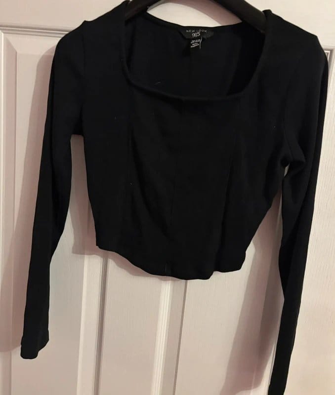 The New Look Black Long Sleeved Cropped Top is available in sizes S.