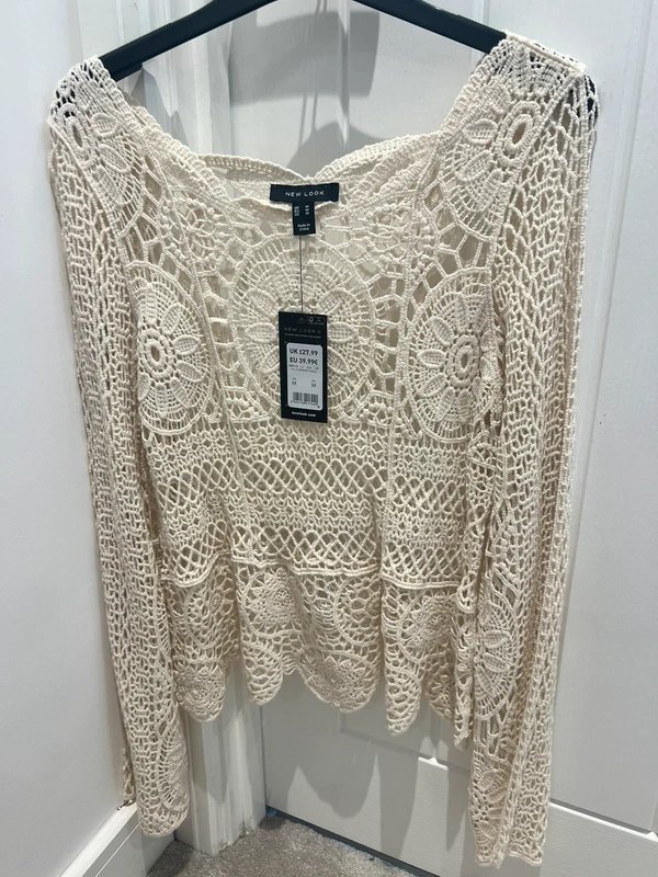 The New Look Crochet Knit Top in Cream is available in sizes M.