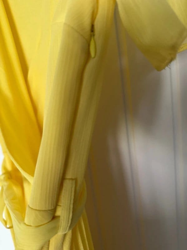 The New Look Yellow Pleated Wrap Dress is made from polyester, spandex.