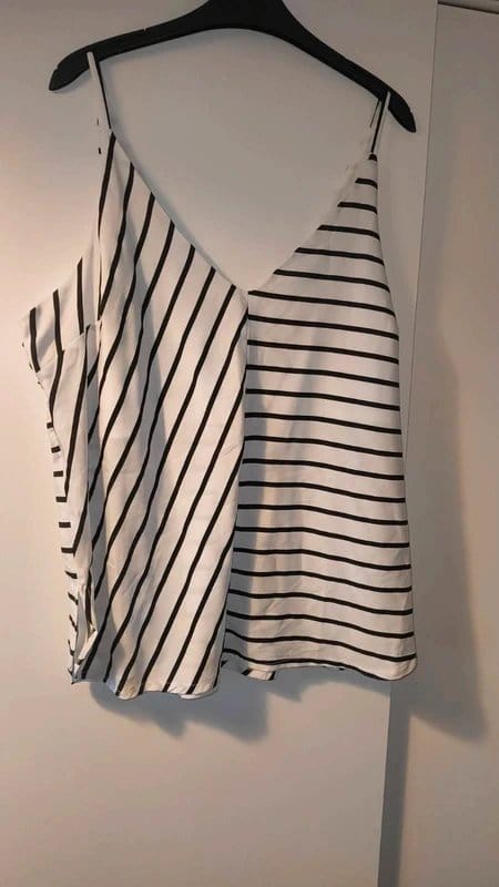 The New Look Black & White Striped Cami Top - Size 18 is available in sizes L.