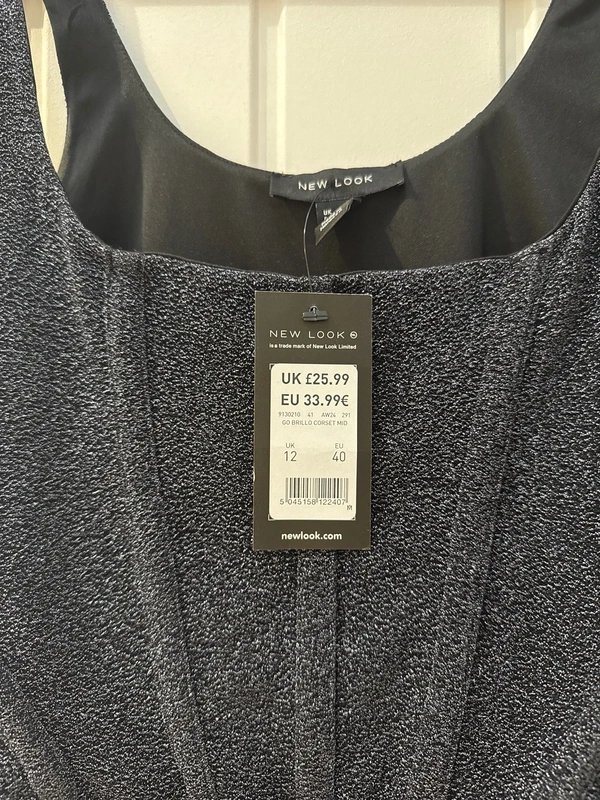 The New Look Black Sparkly Corset Top is available in sizes M.