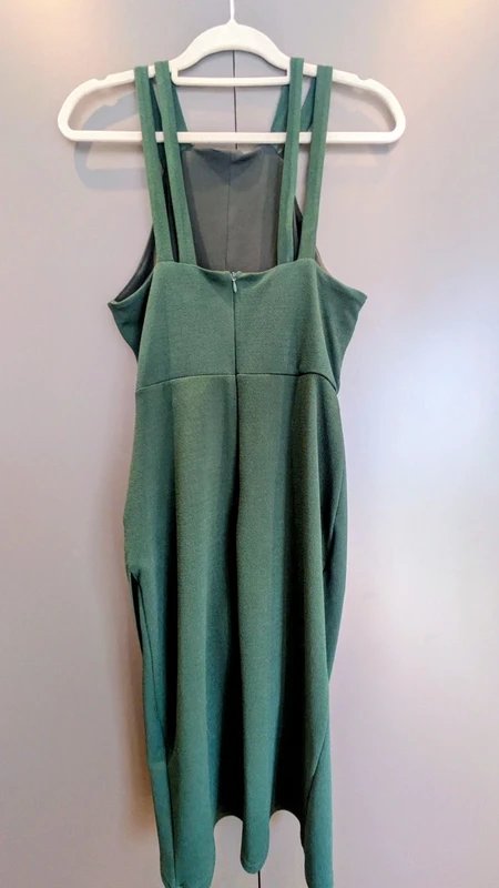 The New Look Bodycon Halter Neck Midi Dress in Dark Green is available in sizes M.