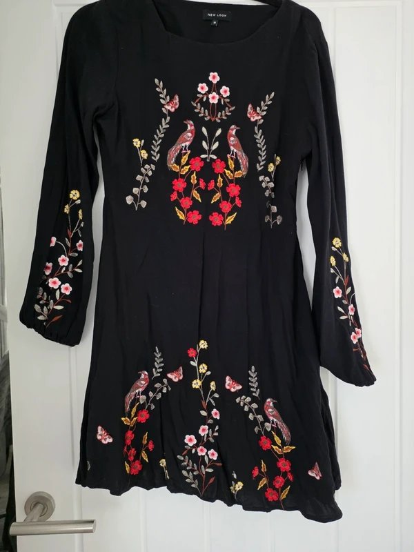 The New Look Embroidered Floral Midi Dress in Black is available in sizes S.