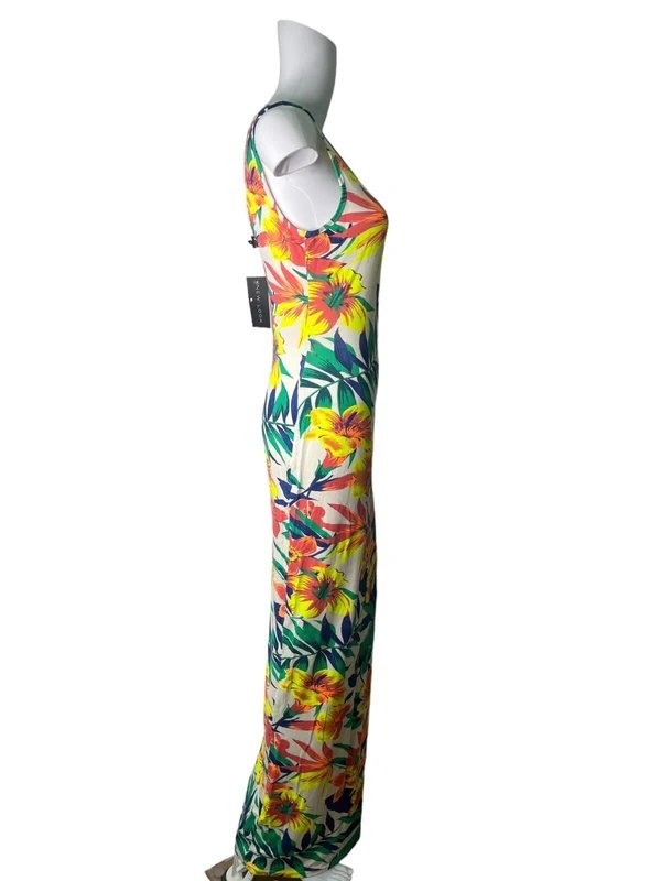 The New Look Tropical Long Dress in Multicolour is available in sizes M.
