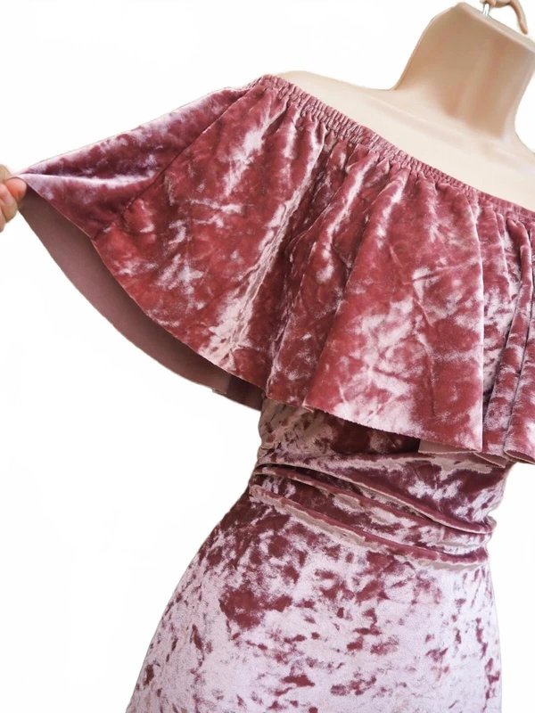 The New Look Dusty Pink Crushed Velvet Ruffle Bardot Bodycon Party Dress is ideal for evening, party.