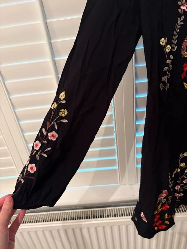 The New Look Embroidered Black Dress is available in sizes M.