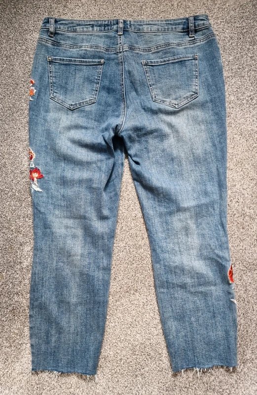 The New Look Embroidered Crop Jeans in Blue is available in sizes L.
