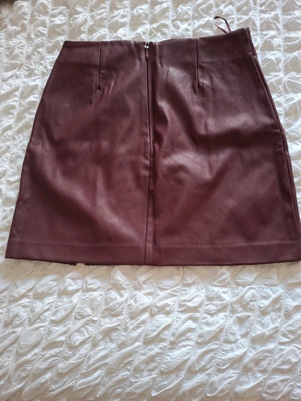 The New Look Faux Leather Skirt in Burgundy is available in sizes S.