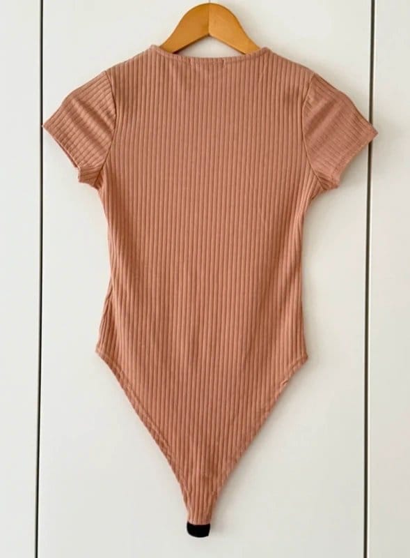 The New Look Beige Ribbed Bodysuit in Size UK 8 is available in sizes S.
