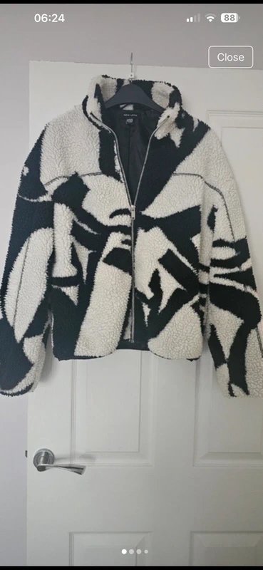 The New Look Cropped Fleece Jacket in Black and White is available in sizes S.