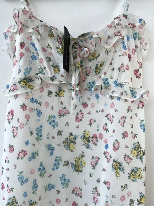 The New Look White Floral Chiffon Strappy Dress is available in sizes M.