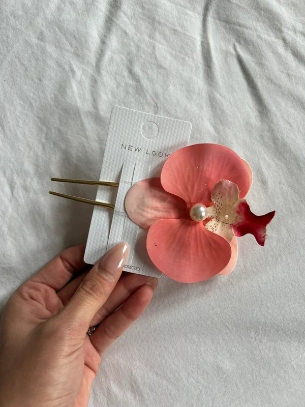 This floral fuschia French pin from New Look adds a pop of color to any outfit. The intricate design features a delicate pearl centerpiece, perfect for adding a touch of elegance to your look.
