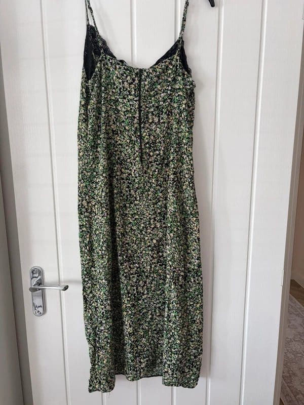 The New Look Green Floral Long Dress is available in sizes M.