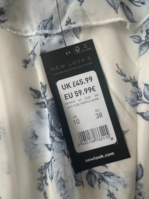 This maxi dress from New Look features a floral print in white and blue, with ruffles and a flowing silhouette. Ideal for casual outings or summer events.
