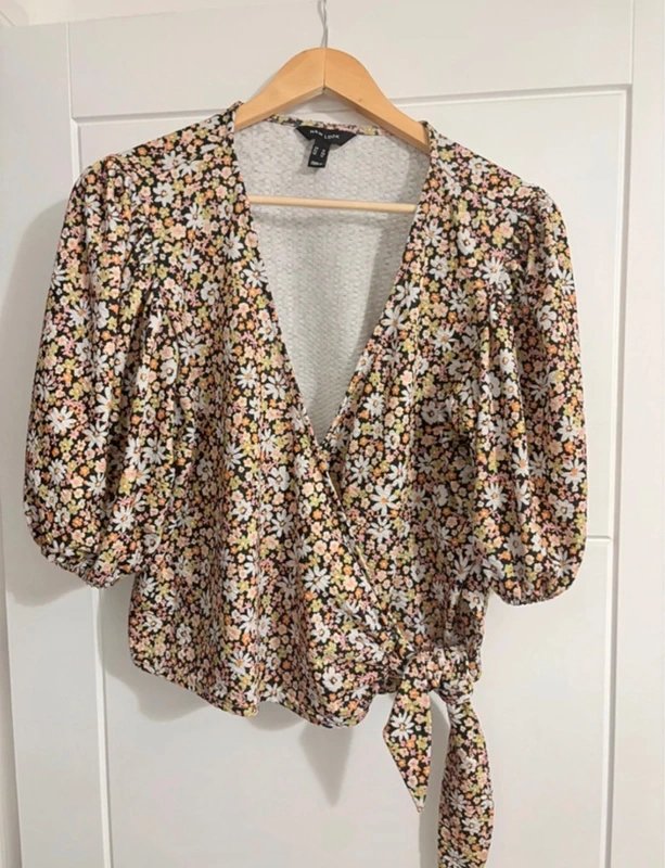The New Look Floral Wrap Top in Multi is available in sizes L.