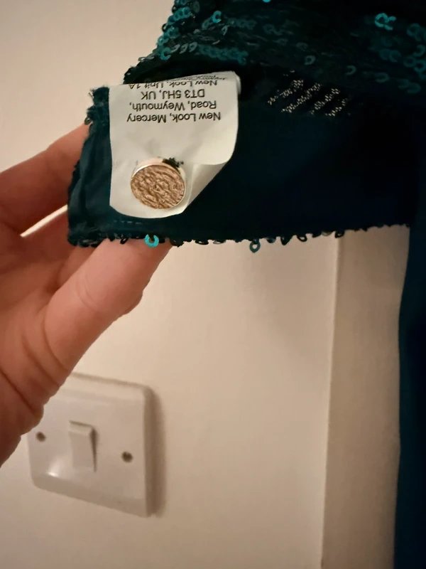 The New Look Dark Green Sequin Satin Evening Dress is available in sizes M.