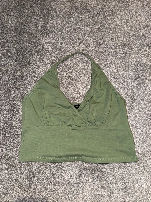 The New Look Halter Neck Cropped Tank in Khaki is available in sizes M.