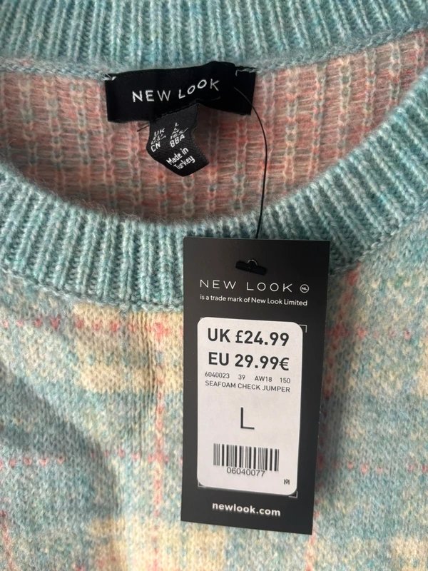 Crafted with a pale blue checked pattern, this New Look jumper features a cozy crew neck. Made from a blend of materials, it provides a comfortable fit perfect for layering over your favorite tops.