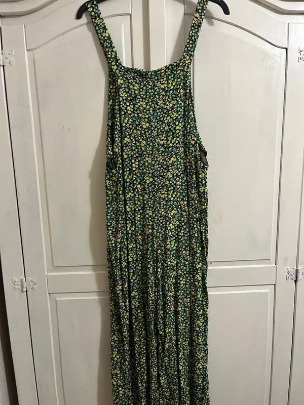The New Look Green Floral Jumpsuit is available in sizes L.
