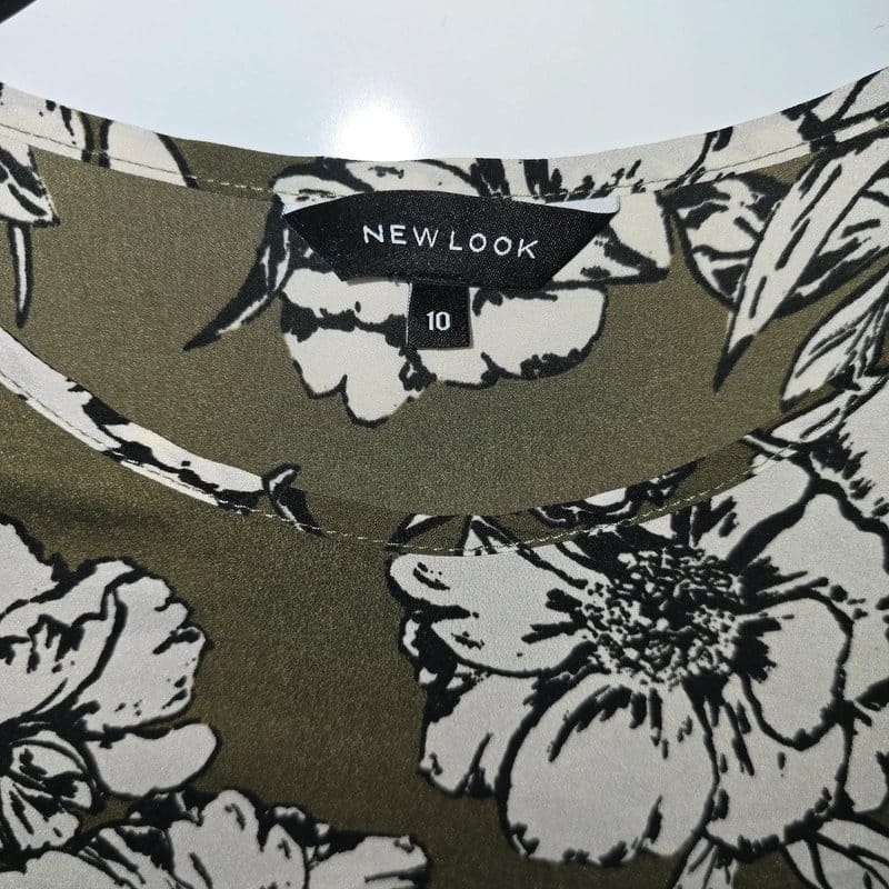 The New Look Khaki Floral S/S Blouse Top Size 10 is available in sizes S.