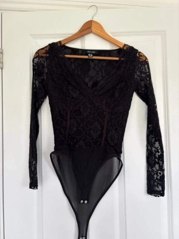 See all outfit ideasStylish black lace bodysuit from New Look featuring a V-neckline, long sleeves, and popper fastening. Perfect for a seductive look.