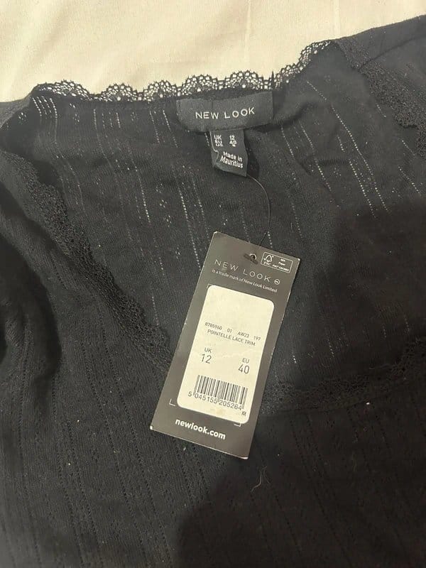 The New Look Black Lace Trim Long Sleeve T-Shirt is available in sizes M.