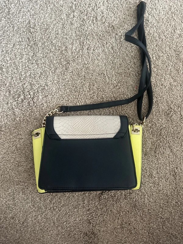 The New Look Black Cross Body Bag with Yellow Accents is ideal for casual, work, date-night.