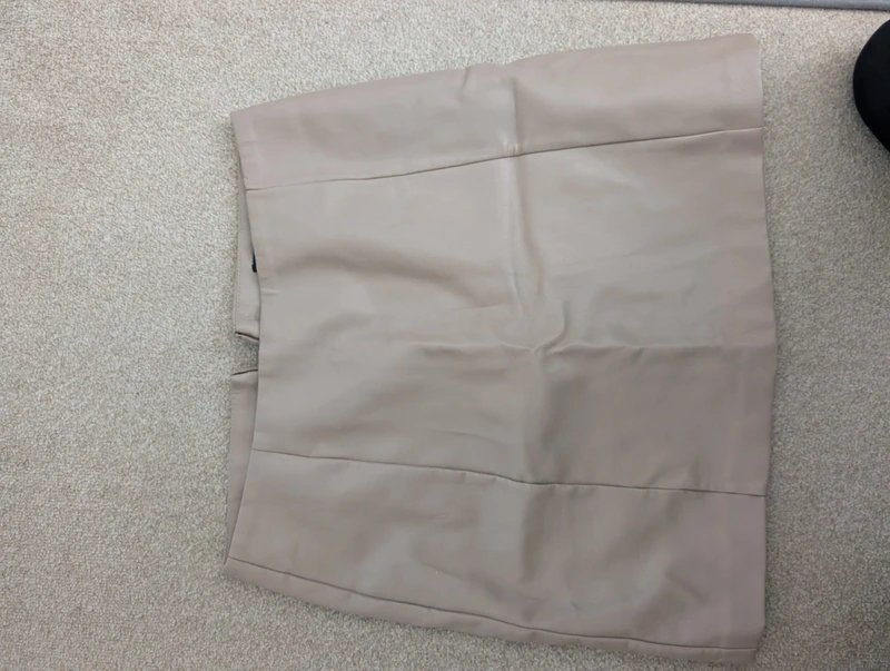 The New Look Faux Leather Skirt in Beige is available in sizes M.