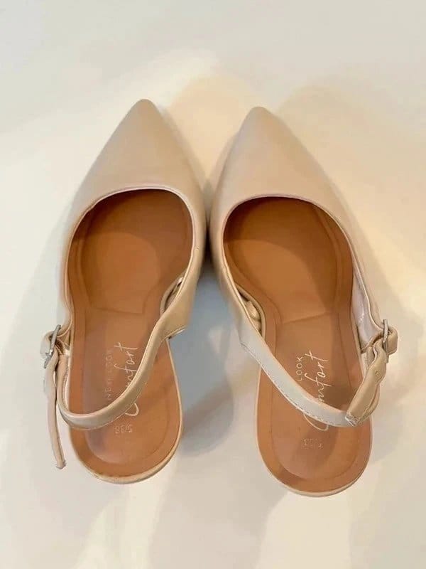Elegant New Look leather slingback heels in a soft cream colour. Featuring a pointed toe and a slingback strap for a secure fit. Perfect for everyday wear.