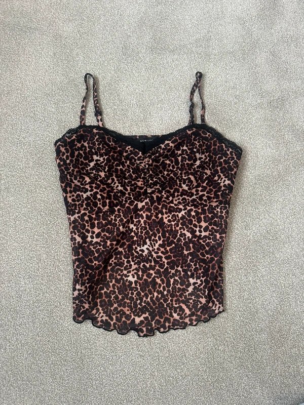 The New Look Leopard Print Cami in Brown is available in sizes M.