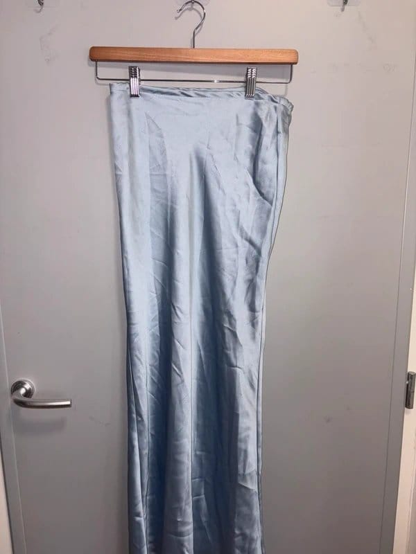 The New Look Light Blue Satin Maxi Skirt is available in sizes S.