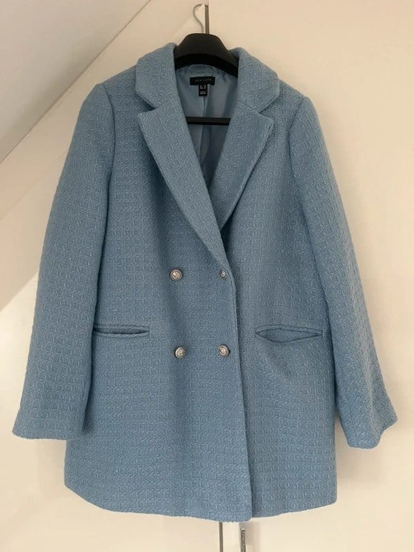 “Pair this jacket with a light blue turtleneck and dark wash jeans for a cohesive look.”
