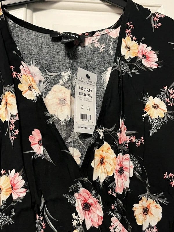 This gorgeous New Look maxi dress features a floral print in black and multi-colours. The wrap-around neckline and adjustable straps add a touch of elegance. Perfect for casual outings or special occasions.